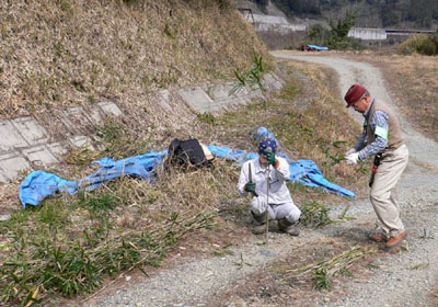 ユキヤナギ植栽は今の時期が良いとの植木屋さんの助言も得て、2月16日に前記関係者と植栽場所等につき打ち合わせを行い、次いで2月24日、本会会員の他地元の皆さんの参加を得て、100株の苗木を植栽しました。
